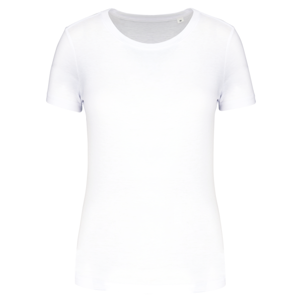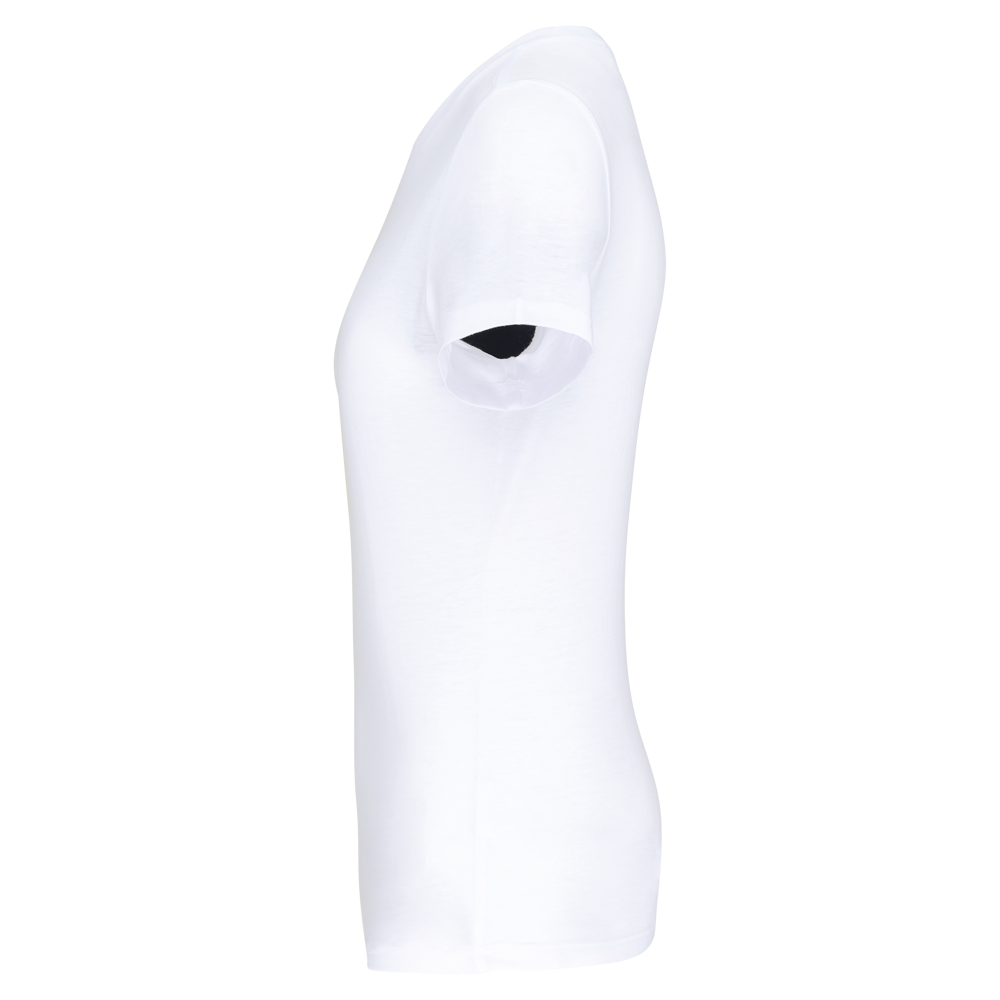 50% poliestere / 25% cotone / 25% viscosa. Tessuto jersey. Trattamento antipilling. Girocollo. Taglio dritto. Nastrino di rinforzo tono su tono spalla-collo schiena-spalla. Finitura a doppia impuntura a fondo manica e fondo capo. Finitura tubolare a fondo capo e fondo manica. Etichetta con il nome del marchio strappabile per semplificare la personalizzazione.