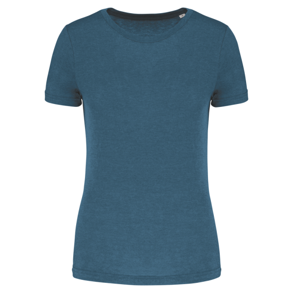 50% poliestere / 25% cotone / 25% viscosa. Tessuto jersey. Trattamento antipilling. Girocollo. Taglio dritto. Nastrino di rinforzo tono su tono spalla-collo schiena-spalla. Finitura a doppia impuntura a fondo manica e fondo capo. Finitura tubolare a fondo capo e fondo manica. Etichetta con il nome del marchio strappabile per semplificare la personalizzazione.