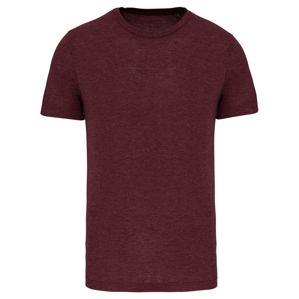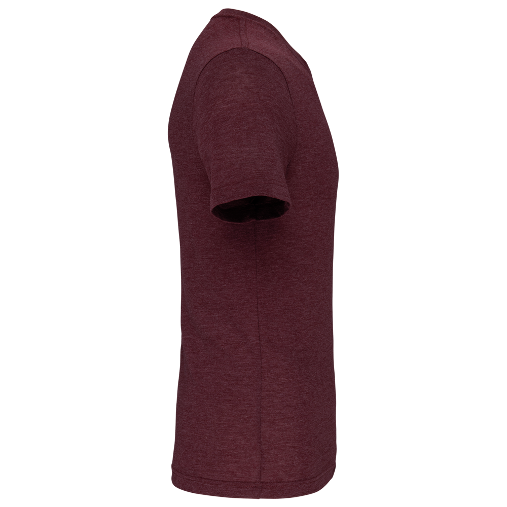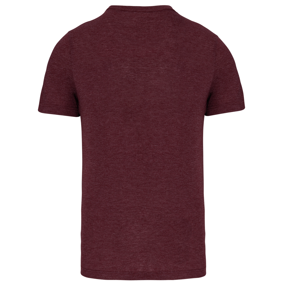 50% poliestere / 25% cotone / 25% viscosa. Tessuto jersey. Nastrino di rinforzo tono su tono sul collo. Finitura a doppia impuntura a fondo manica e fondo capo. Nessuna etichetta con il nome della marca al collo ma solo una piccola etichetta con l'indicazione della taglia per semplificare la personalizzazione.