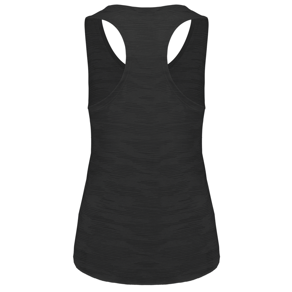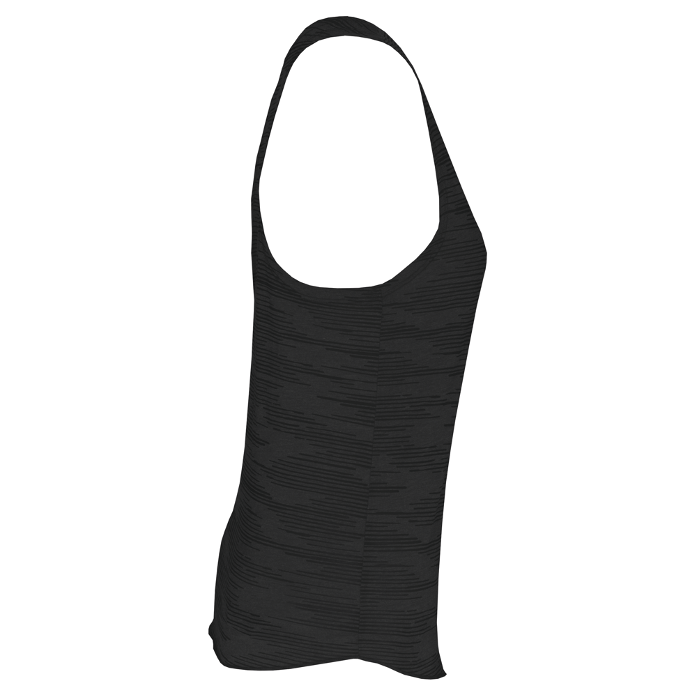 65% poliestere / 35% viscosa - Maglia jersey fluida a effetto fiammato. Modello ampio. Giromanica largo e schiena nuotatore. Collo tondo con nastrino di rinforzo. Fondo capo leggermente arrotondato.