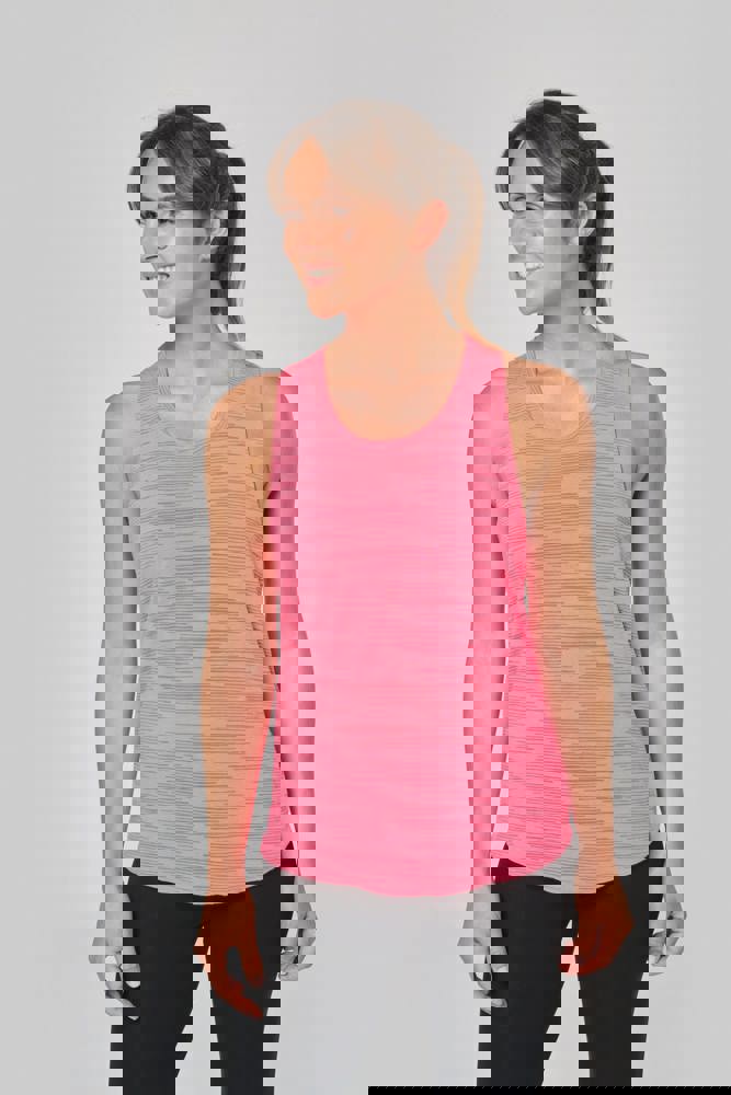 65% poliestere / 35% viscosa - Maglia jersey fluida a effetto fiammato. Modello ampio. Giromanica largo e schiena nuotatore. Collo tondo con nastrino di rinforzo. Fondo capo leggermente arrotondato.