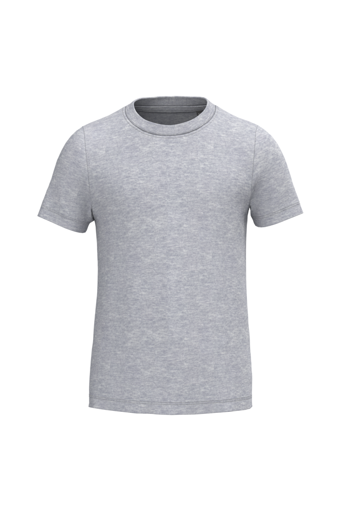 Tinta unita : 100% cotone. Colore Ash Heather : 98% cotone / 2% viscosa, e Oxford Grey : 90% cotone / 10% viscosa. Tutti i colori sono realizzati in cotone in conversione biologico. Cotone pettinato. Modello tagliato e cucito. Girocollo a costine ed elastan. Nastrino di rinforzo tono su tono sul collo. Finiture a doppio ago sui polsini a e fondo capo.
