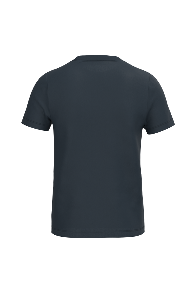 Tinta unita : 100% cotone. Colore Ash Heather : 98% cotone / 2% viscosa, e Oxford Grey : 90% cotone / 10% viscosa. Tutti i colori sono realizzati in cotone in conversione biologico. Cotone pettinato. Modello tagliato e cucito. Girocollo a costine ed elastan. Nastrino di rinforzo tono su tono sul collo. Finiture a doppio ago sui polsini a e fondo capo.