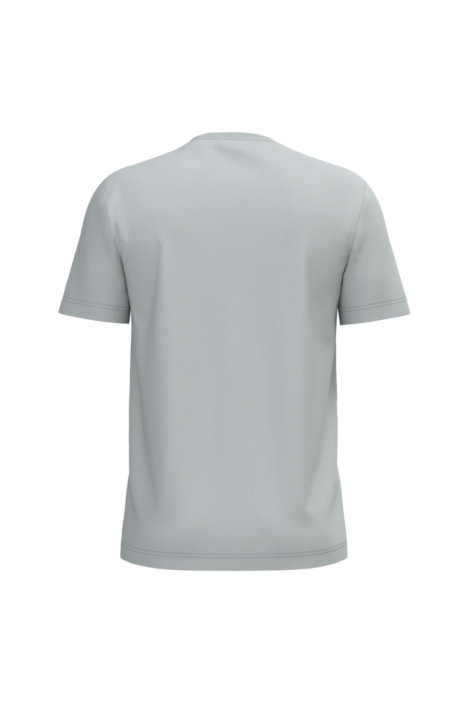 Tinta unita : 100% cotone. Colore Ash Heather : 98% cotone / 2% viscosa. Tinta Oxford Grey : 90% cotone / 10% viscosa. Tinte Wine Heather ; French Navy Heather ; Green Marble Heather ; Cloudy Blue Heather : 80% cotone / 20% poliestere. E i tinta Grey Heather : 70% cotone / 30% poliestere. Tutti i colori sono realizzati in cotone in conversione biologico. Cotone pettinato. Girocollo a costine con elastan. Nastrino di rinforzo tono su tono al collo. Taglio tubolare. Finitura a doppia impuntura a fondo manica e fondo capo.