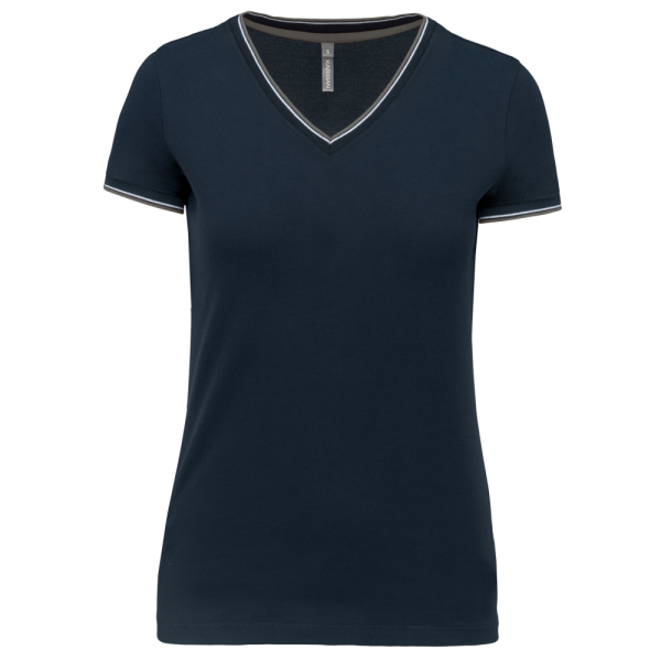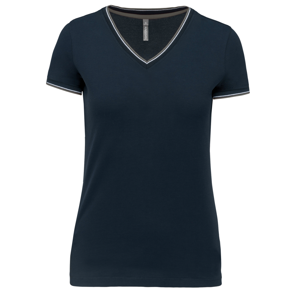 K394 - T-shirt piqué donna scollo a V