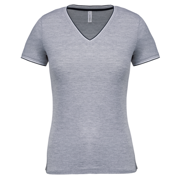 100% cotone pettinato piqué (Oxford Grey: 90% cotone / 10% viscosa). Collo e fondo manica a costine con righe a contrasto. Nastrino di rinforzo nel collo e spacchetti laterali a contrasto. Finitura a doppia impuntura a fondo capo.