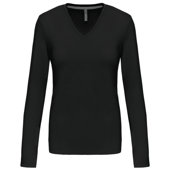 K382C - T-shirt donna manica lunga scollo a V