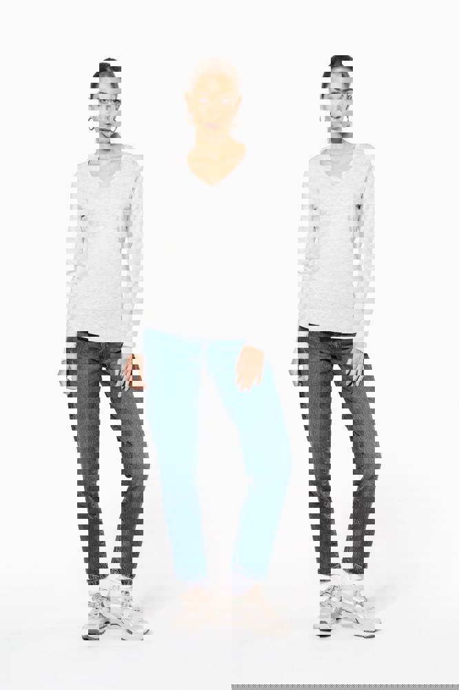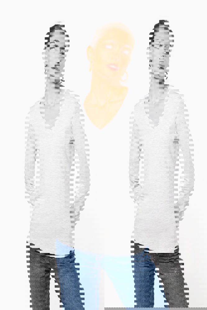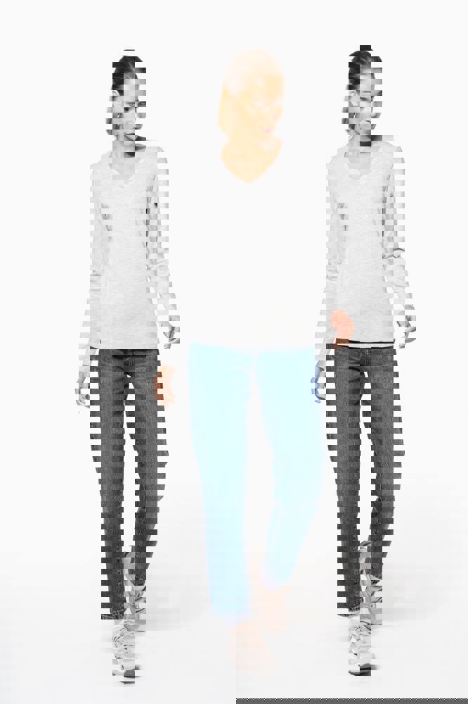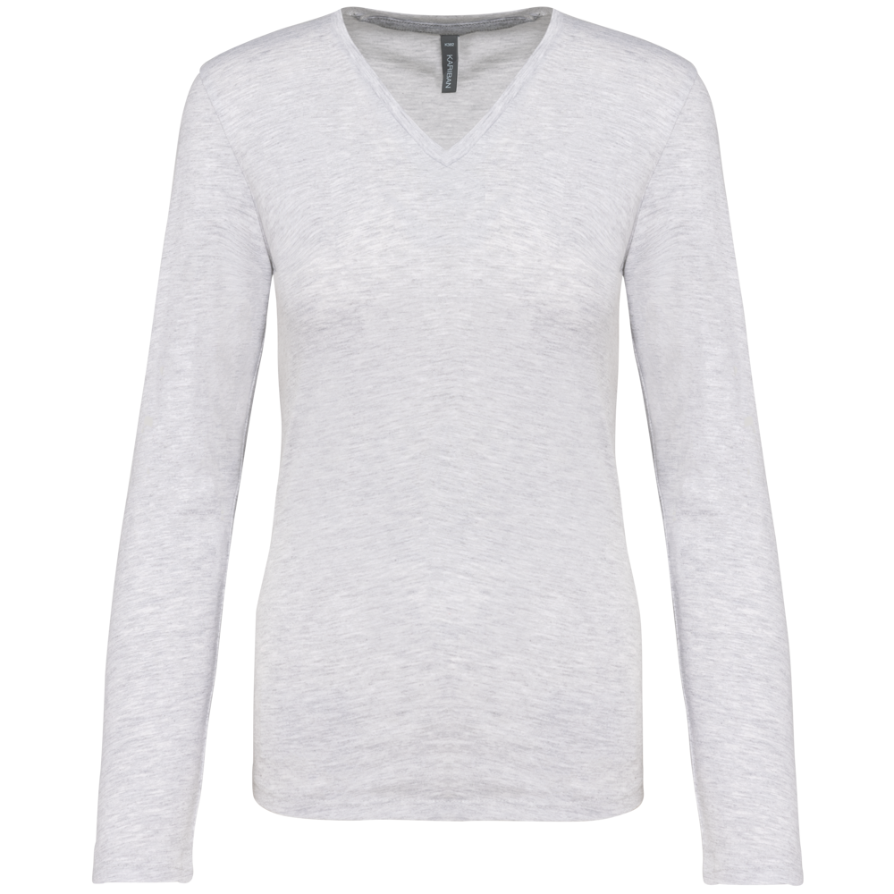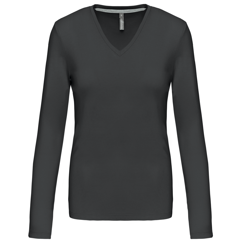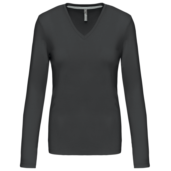 K382C - T-shirt donna manica lunga scollo a V