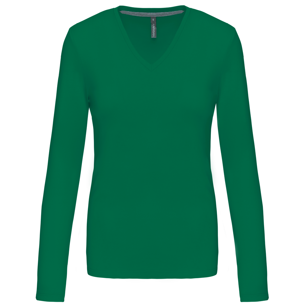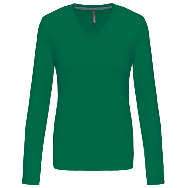 K382C - T-shirt donna manica lunga scollo a V