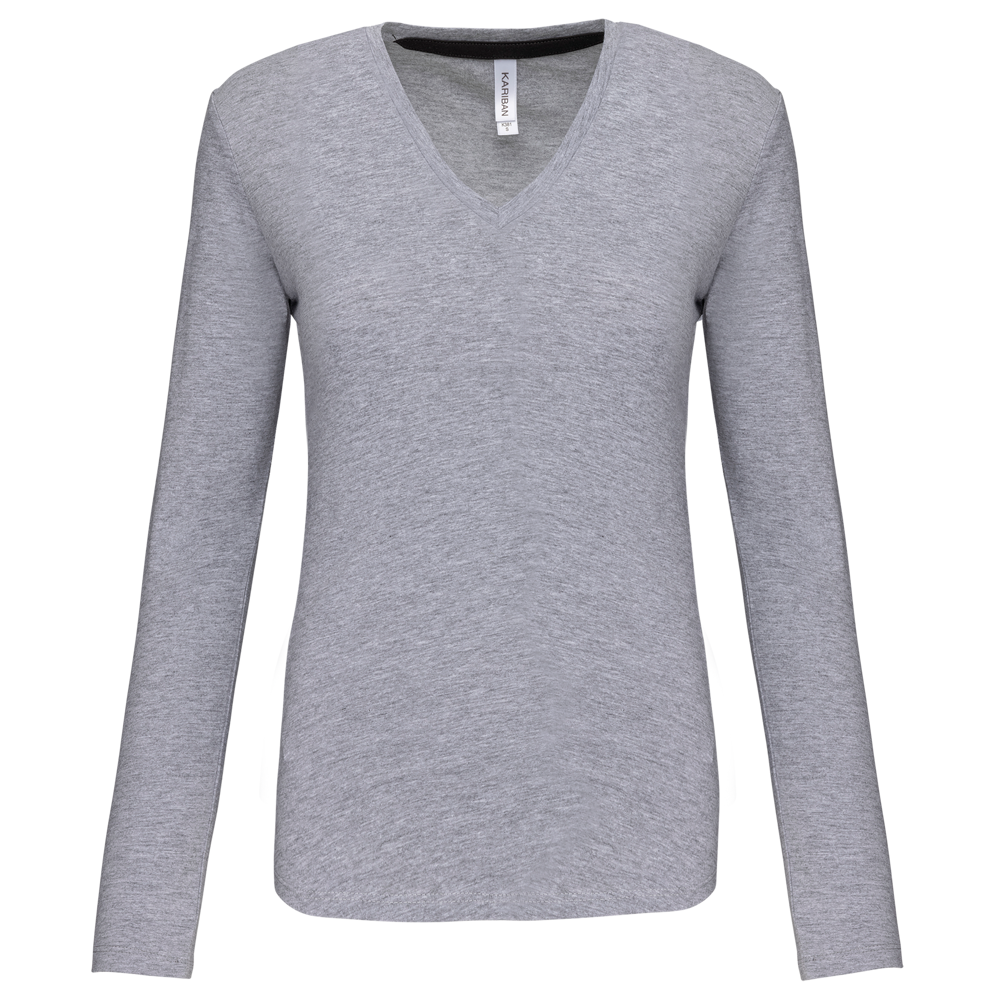 K382C - T-shirt donna manica lunga scollo a V