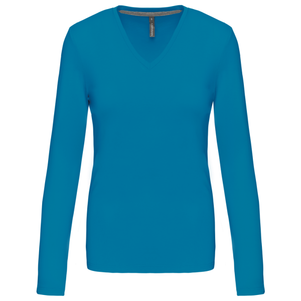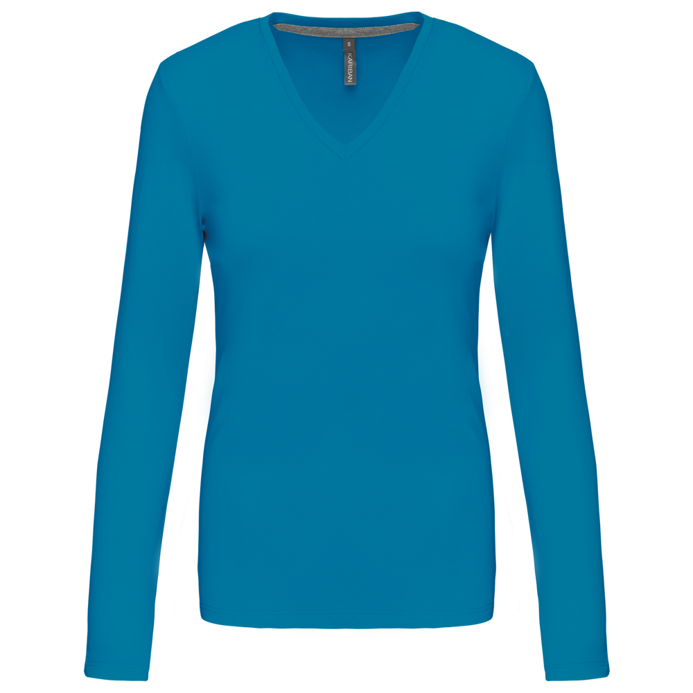 K382C - T-shirt donna manica lunga scollo a V