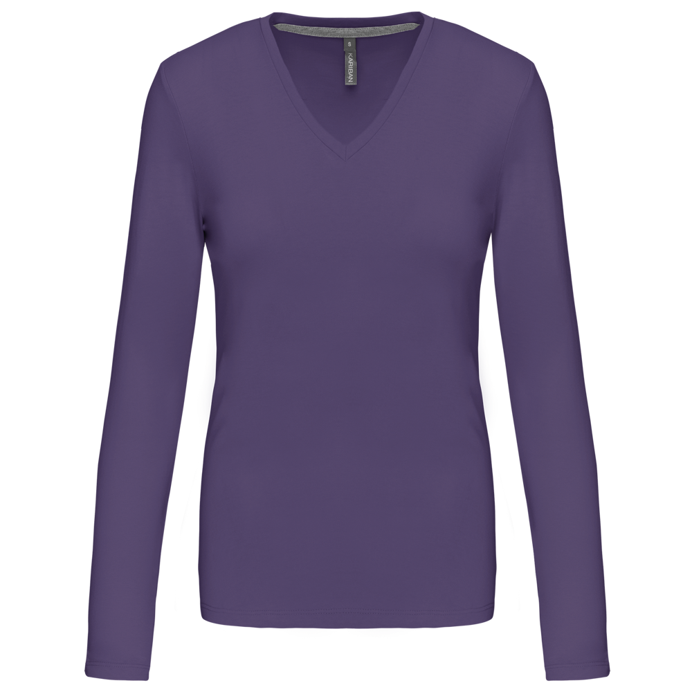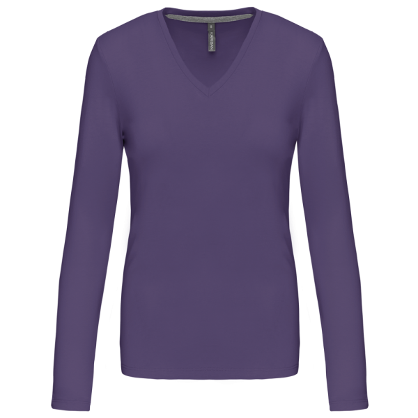 K382C - T-shirt donna manica lunga scollo a V