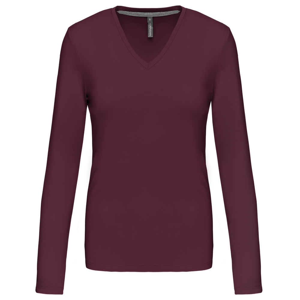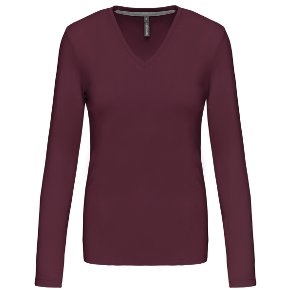 K382C - T-shirt donna manica lunga scollo a V
