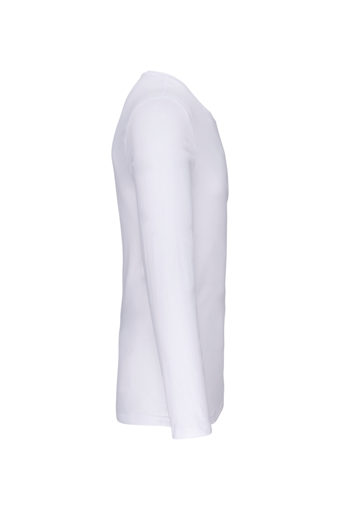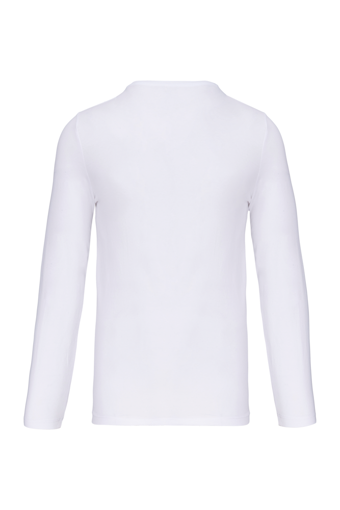 97% cotone / 3% elastan. Colori melange: 87% cotone / 9% viscosa / 4% elastan. Girocollo. Finitura a doppia impuntura a fondo manica e fondo capo. Con il suo taglio moderno e aderente, richiama i modelli del prêt à porter.