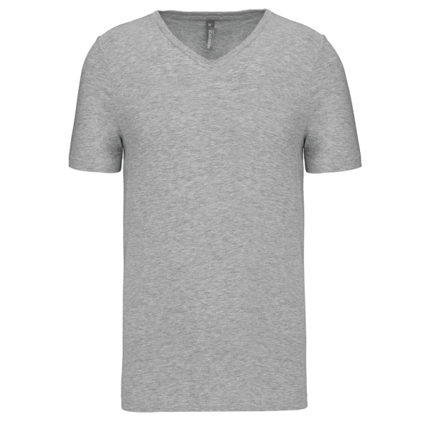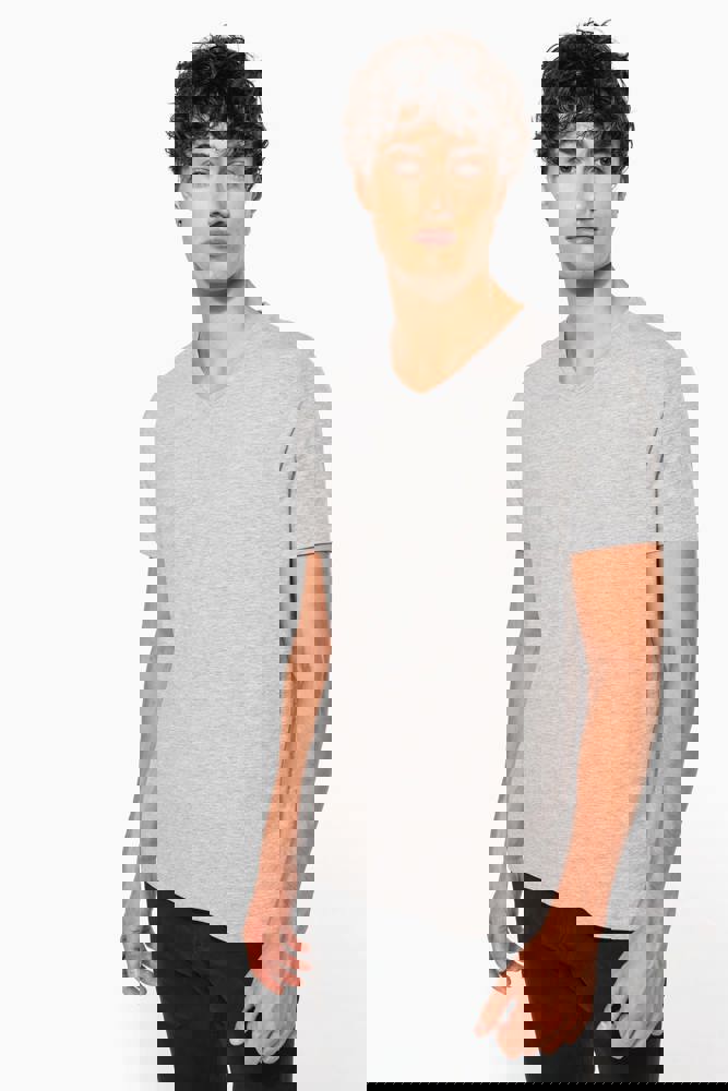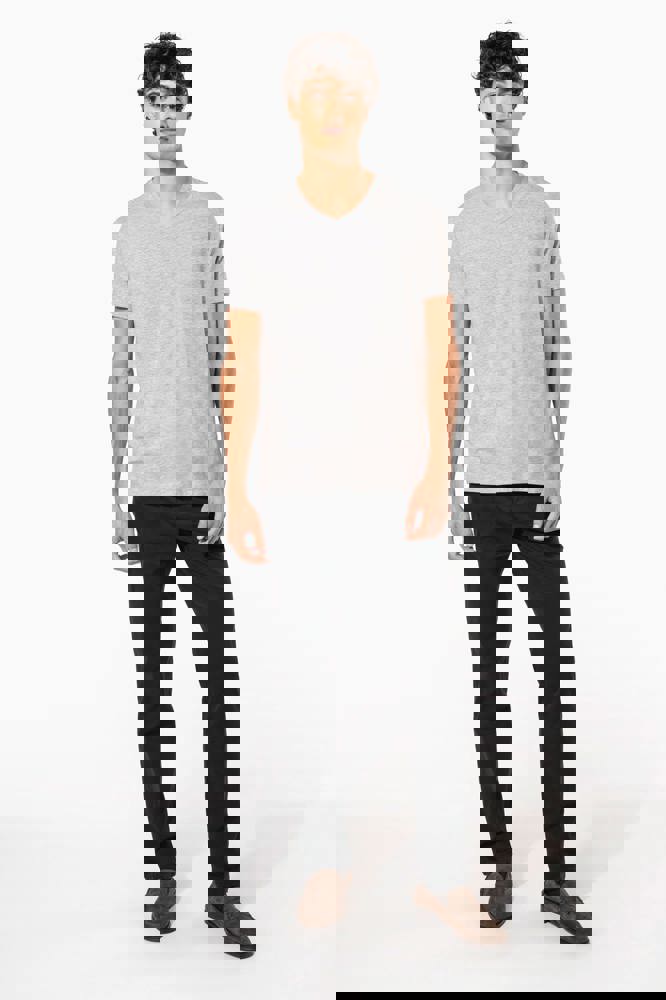 97% cotone / 3% elastan. Colori melange: 87% cotone / 9% viscosa / 4% elastan. Collo a V. Finitura a doppia impuntura a fondo manica e fondo capo. Con il suo taglio moderno e aderente, richiama i modelli del prêt à porter.