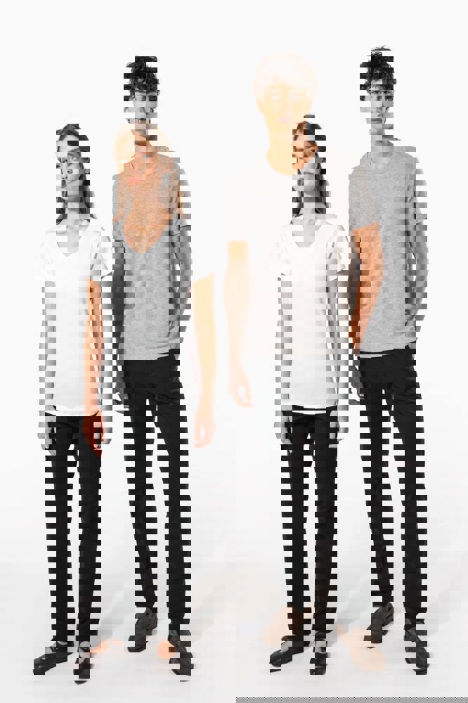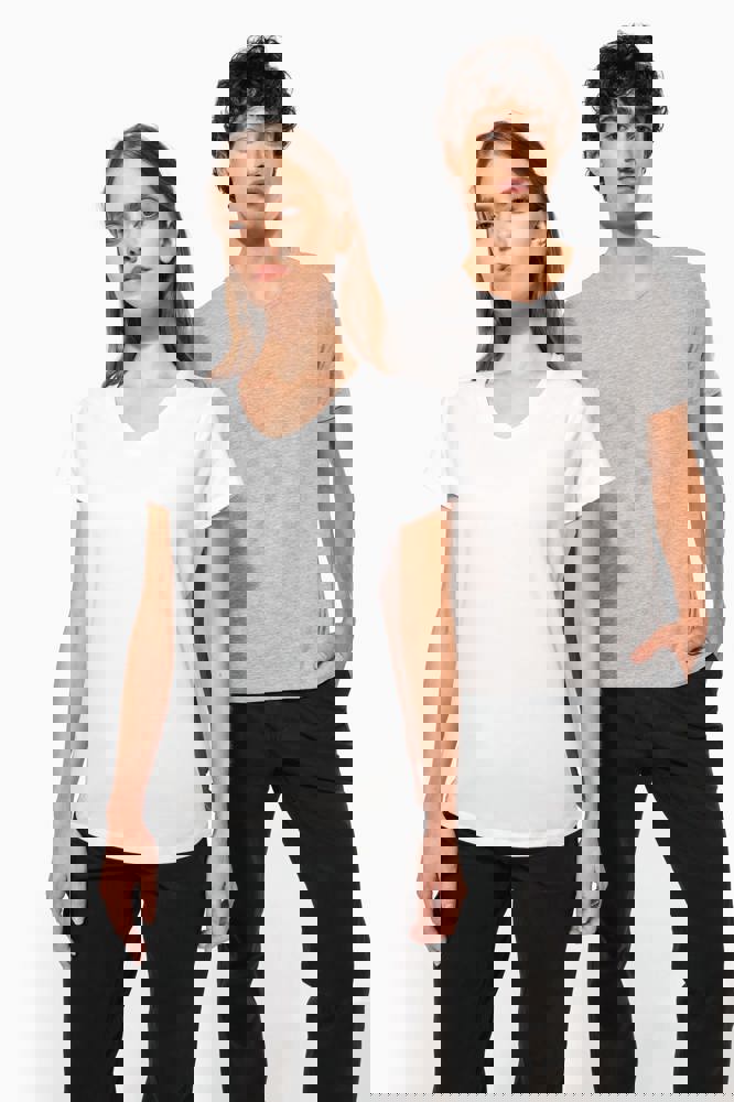 97% cotone / 3% elastan. Colori melange: 87% cotone / 9% viscosa / 4% elastan. Collo a V.... altro