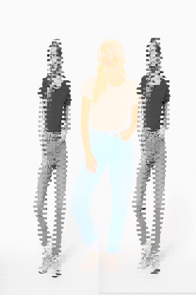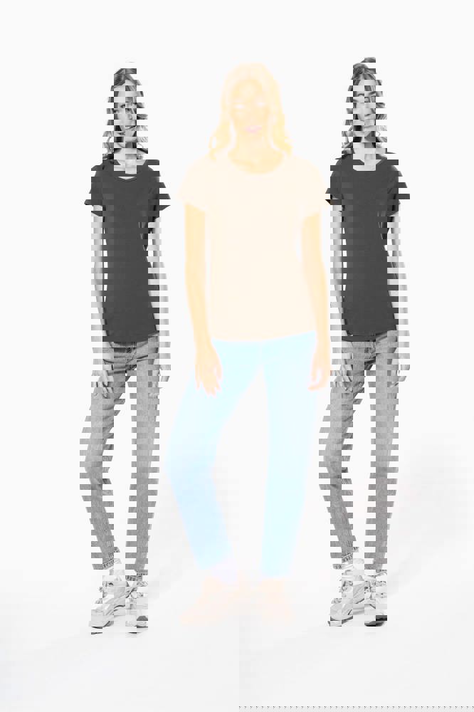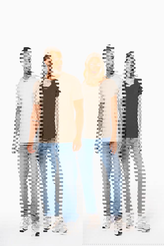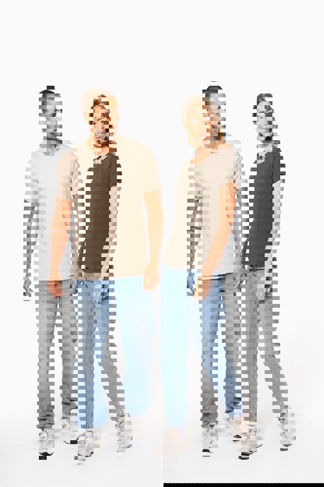 97% cotone / 3% elastan. Colori melange: 87% cotone / 9% viscosa / 4% elastan. Girocollo. Finitura a doppia impuntura a fondo manica e fondo capo. Con il suo taglio moderno e aderente, richiama i modelli del prêt à porter.