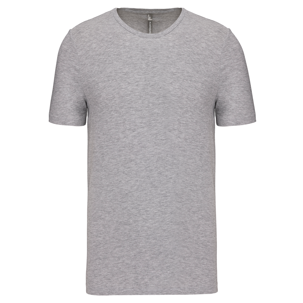 97% cotone / 3% elastan. Per i colori melange: 87% cotone / 9% viscosa / 4% elastan. Girocollo. Finitura a doppia impuntura a fondo manica e fondo capo. Con il suo taglio moderno e aderente, richiama i modelli del prêt à porter