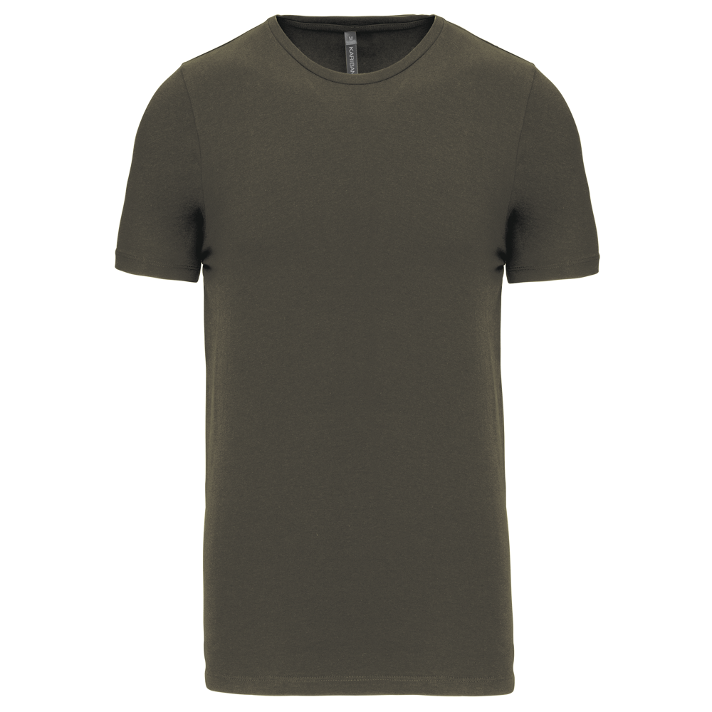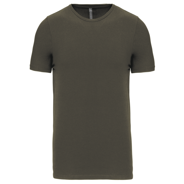 97% cotone / 3% elastan. Per i colori melange: 87% cotone / 9% viscosa / 4% elastan. Girocollo. Finitura a doppia impuntura a fondo manica e fondo capo. Con il suo taglio moderno e aderente, richiama i modelli del prêt à porter