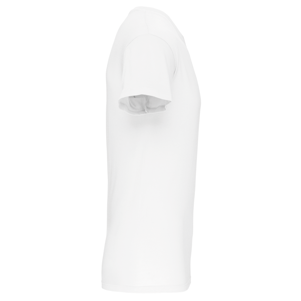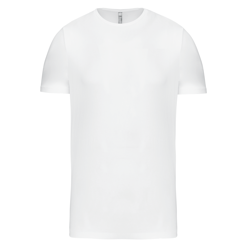 97% cotone / 3% elastan. Per i colori melange: 87% cotone / 9% viscosa / 4% elastan. Girocollo. Finitura a doppia impuntura a fondo manica e fondo capo. Con il suo taglio moderno e aderente, richiama i modelli del prêt à porter