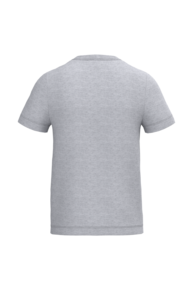 Colori uniti: 100% cotone. Colore Ideal Ash Heather: 99% cotone / 1% viscosa. Colore Ideal Oxford Grey: 90% cotone / 10% viscosa. Taglio dritto. Maglia jersey tagliata e cucita dalla taglia 1/2 alla 6/8 e tubolare dalla taglia 8/10 alla 12/14. Collo rotondo con finitura a costine 1x1 con doppie impunture. Nastro di rinforzo interno al collo tono su tono. Finitura a doppio ago su fondo maniche e fondo capo. Etichetta del marchio staccabile.