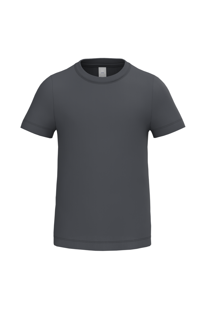 Colori uniti: 100% cotone. Colore Ideal Ash Heather: 99% cotone / 1% viscosa. Colore Ideal Oxford Grey: 90% cotone / 10% viscosa. Taglio dritto. Maglia jersey tagliata e cucita dalla taglia 1/2 alla 6/8 e tubolare dalla taglia 8/10 alla 12/14. Collo rotondo con finitura a costine 1x1 con doppie impunture. Nastro di rinforzo interno al collo tono su tono. Finitura a doppio ago su fondo maniche e fondo capo. Etichetta del marchio staccabile.