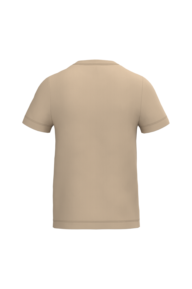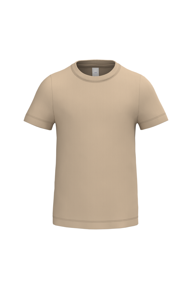 Colori uniti: 100% cotone. Colore Ideal Ash Heather: 99% cotone / 1% viscosa. Colore Ideal Oxford Grey: 90% cotone / 10% viscosa. Maglia jersey tagliata e cucita dalla taglia 1/2 alla 6/8 e tubolare dalla taglia 8/10 alla 12/14. Taglio dritto. Collo rotondo con finitura a costine 1x1 con doppie impunture. Nastro di rinforzo interno al collo tono su tono. Orli delle maniche e del fondo capo con finitura a doppio ago. Etichetta del marchio staccabile.