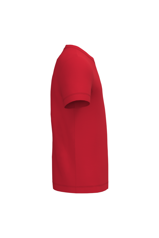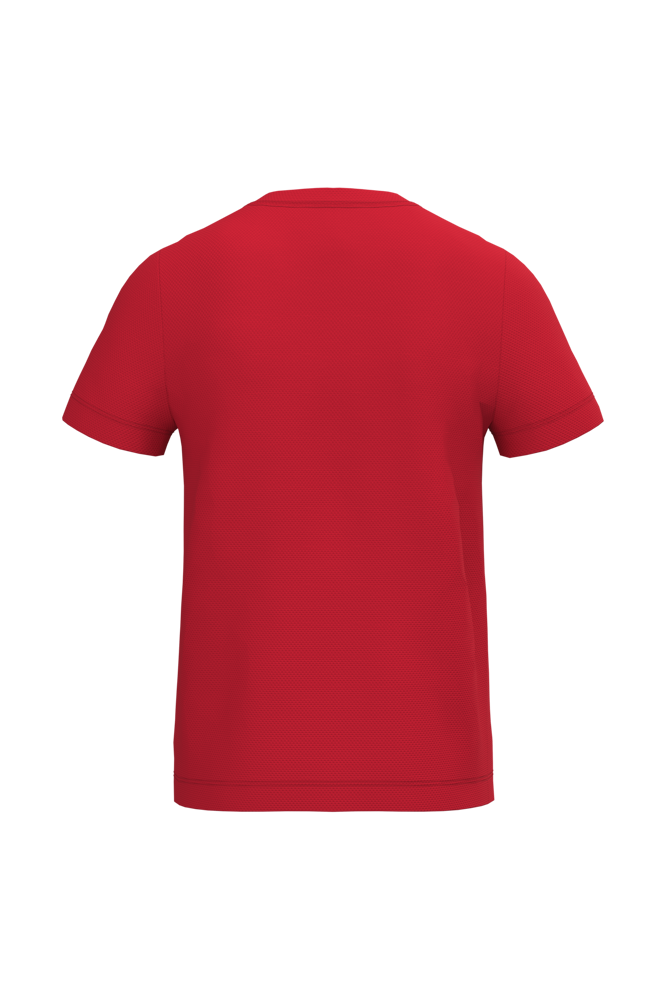 100% poliestere. Maglia piqué mesh. Tessuto leggero ad asciugatura rapida. Taglio dritto. Collo rotondo in maglia piqué mesh con doppie impunture. Nastro di rinforzo interno al collo tono su tono. Orli delle maniche e del fondo capo con finitura a doppio ago. Etichetta del marchio staccabile.