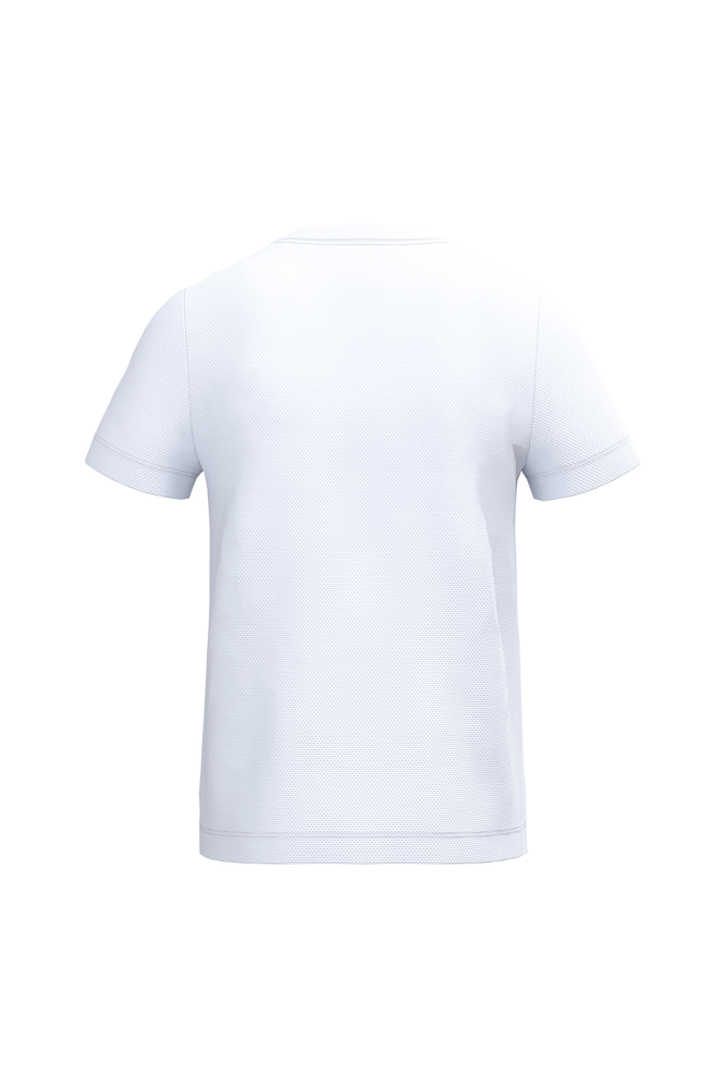100% poliestere. Maglia piqué mesh. Tessuto leggero ad asciugatura rapida. Taglio dritto. Collo rotondo in maglia piqué mesh con doppie impunture. Nastro di rinforzo interno al collo tono su tono. Orli delle maniche e del fondo capo con finitura a doppio ago. Etichetta del marchio staccabile.