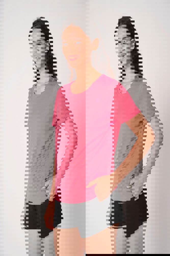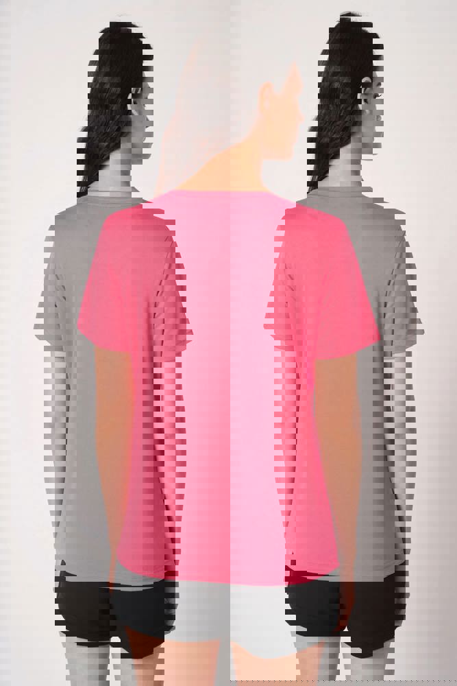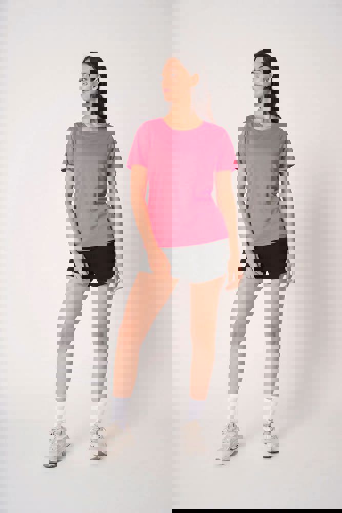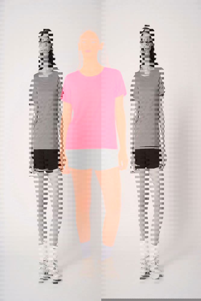 100% poliestere. Maglia piqué mesh. Tessuto leggero ad asciugatura rapida. Taglio dritto. Collo rotondo in maglia piqué mesh con doppie impunture. Nastro di rinforzo interno al collo tono su tono. Orli delle maniche e del fondo capo con finitura a doppio ago. Etichetta del marchio staccabile.