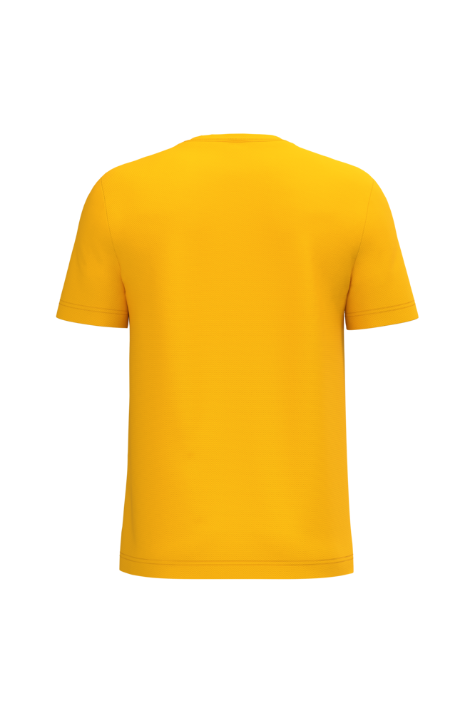 100% poliestere. Maglia piqué mesh. Tessuto leggero ad asciugatura rapida. Taglio dritto. Collo rotondo in maglia piqué mesh con doppie impunture. Nastro di rinforzo interno al collo tono su tono. Orli delle maniche e del fondo capo con finitura a doppio ago. Etichetta del marchio staccabile.