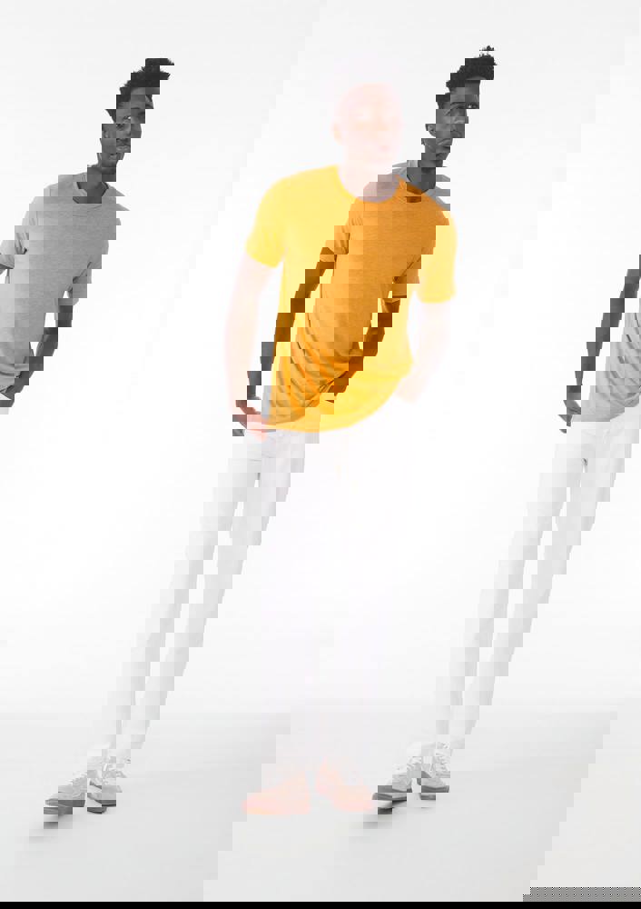 50% Poliestere / 25% Cotone pettinato Ring-Spun / 25% Rayon. Girocollo. Maniche corte. Combinazione esclusiva di tessuto. Cuciture laterali. Taglio attillato.