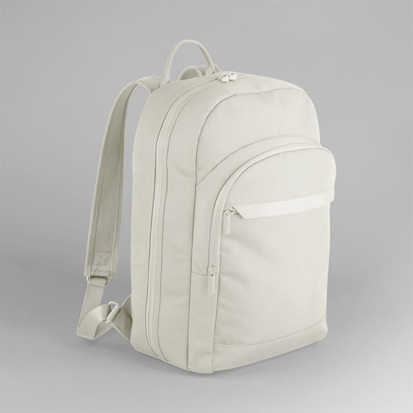 100% poliestere 600D riciclato. Grande apertura con zip per facile accesso al contenuto. Tasca interna imbottita per tablet/laptop fino a 13”.