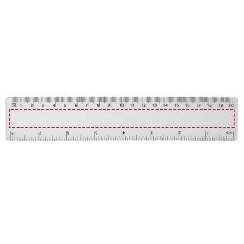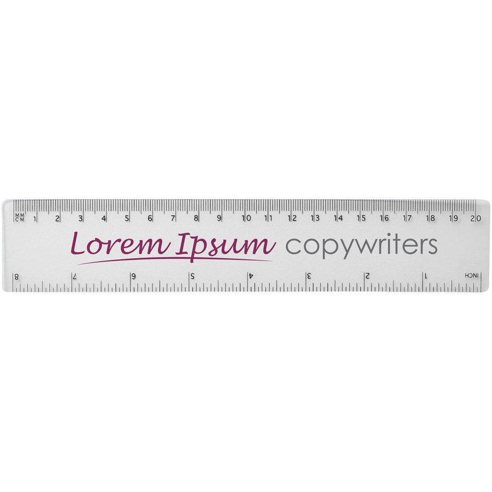 Righello flessibile in plastica leggera con marcature in pollici e in centimetri. Attenzione: le marcature del righello vengono stampate insieme all'artwork. I righelli acquistati neutri saranno consegnati senza marcature.