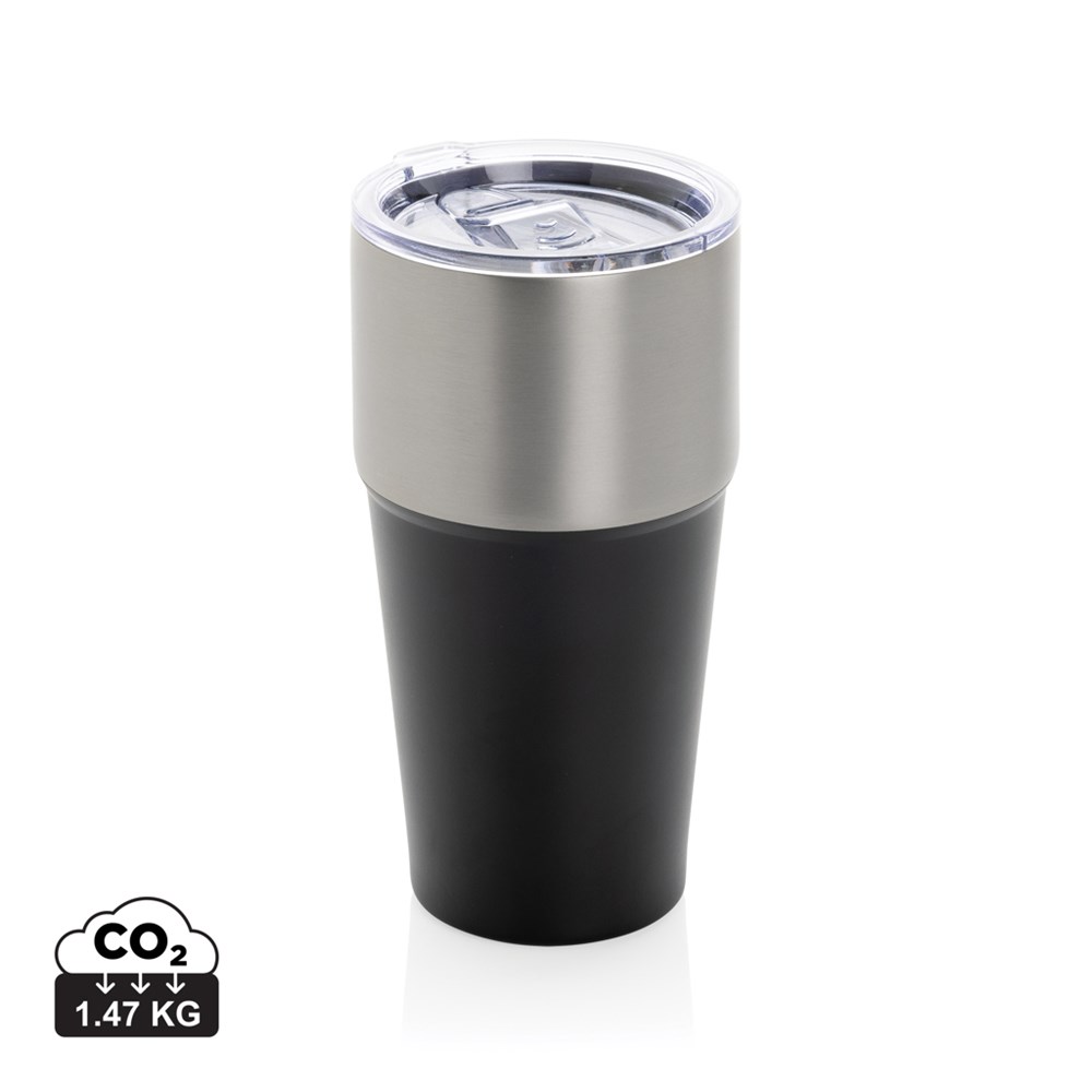 This 500ml tumbler features a distinctive double-coloured exterior with a stylish half-and-half design. The double-wall recycled stainless steel vacuum construction keeps beverages chilled for up to 15 hours or warm for up to 5 hours. The Fluid Tumbler fits most standard car cup holders, making it perfect for on-the-go use. Made with RCS (Recycled Claim Standard) certified recycled materials, ensuring a completely certified supply chain of the recycled materials. Spill proof & BPA free. Includes FSC®certified kraft tube gift packaging. Total recycled content: 81% based on total item weight.