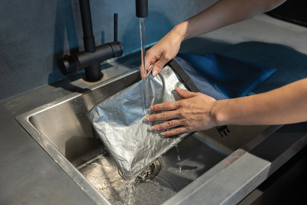 Snackstrap AWARE™ RPET foldable lunchbag is made from recycled PET bottles and offers a smart, sustainable alternative to single-use bags. With its adjustable size and airtight closure, it keeps your lunch fresh and delicious throughout the day. Easy to clean and compact when folded, it’s perfect for on the go. A simple, conscious choice that makes a real difference. Ideal for bread, vegetables and fruit. Freezer proof. Made with recycled polyester embedded with the AWARE™ tracer. 2% of proceeds of each product sold with AWARE™ will be donated to Water.org. PVC free.