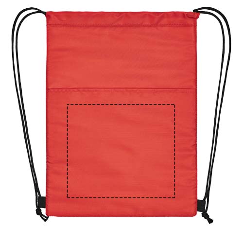 Drawstring cooler bag with string closure in black colour. Features an open front pocket. Fits 12 cans. Resistance up to 5 kg weight.