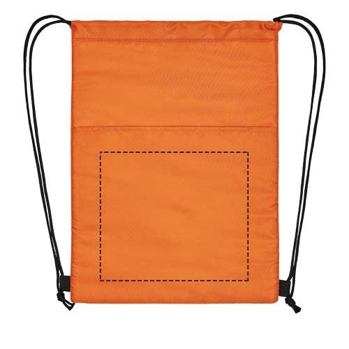 Drawstring cooler bag with string closure in black colour. Features an open front pocket. Fits 12 cans. Resistance up to 5 kg weight.