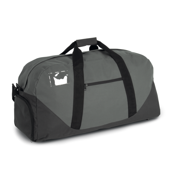 100% poliestere. Borsa sportiva o tempo libero in poliestere 600D. Tracolla sganciabile e regolabile, tasca laterale porta scarpe, tasca frontale con zip, porta badge trasparente, manici rinforzati, piedini in plastica.