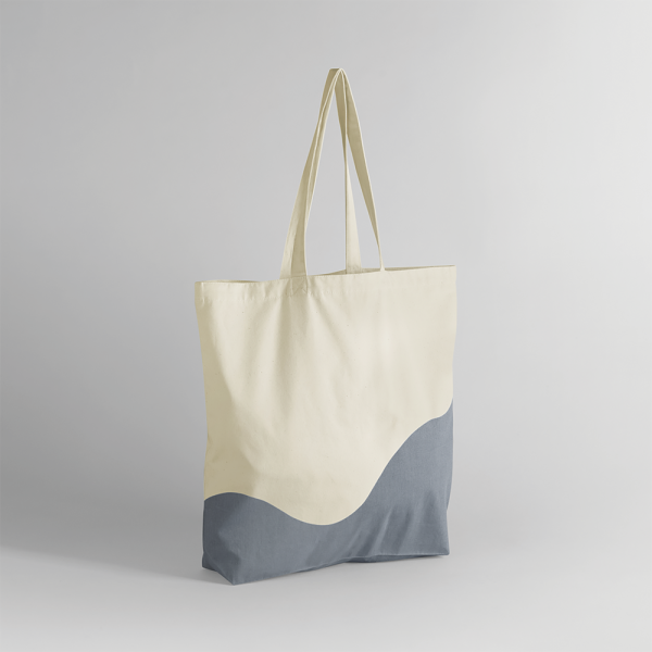 100% cotone biologico. Borsa con stampa a onde che può essere indossata a mano o a tracolla.