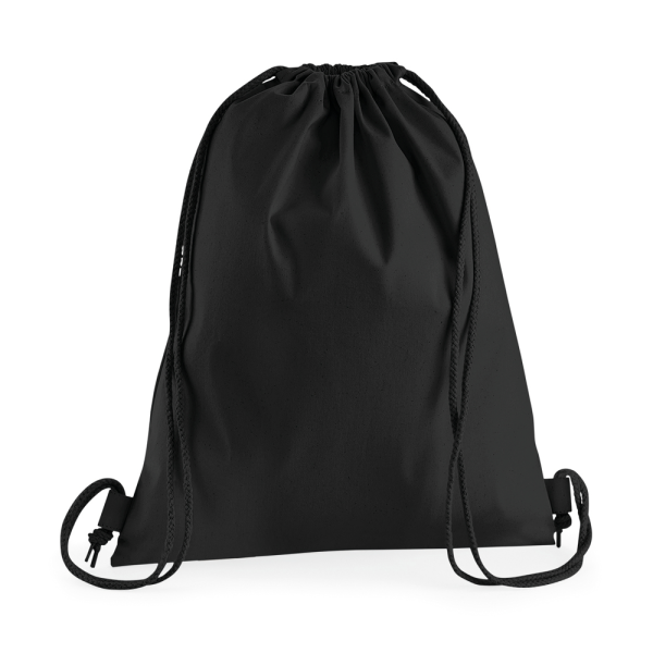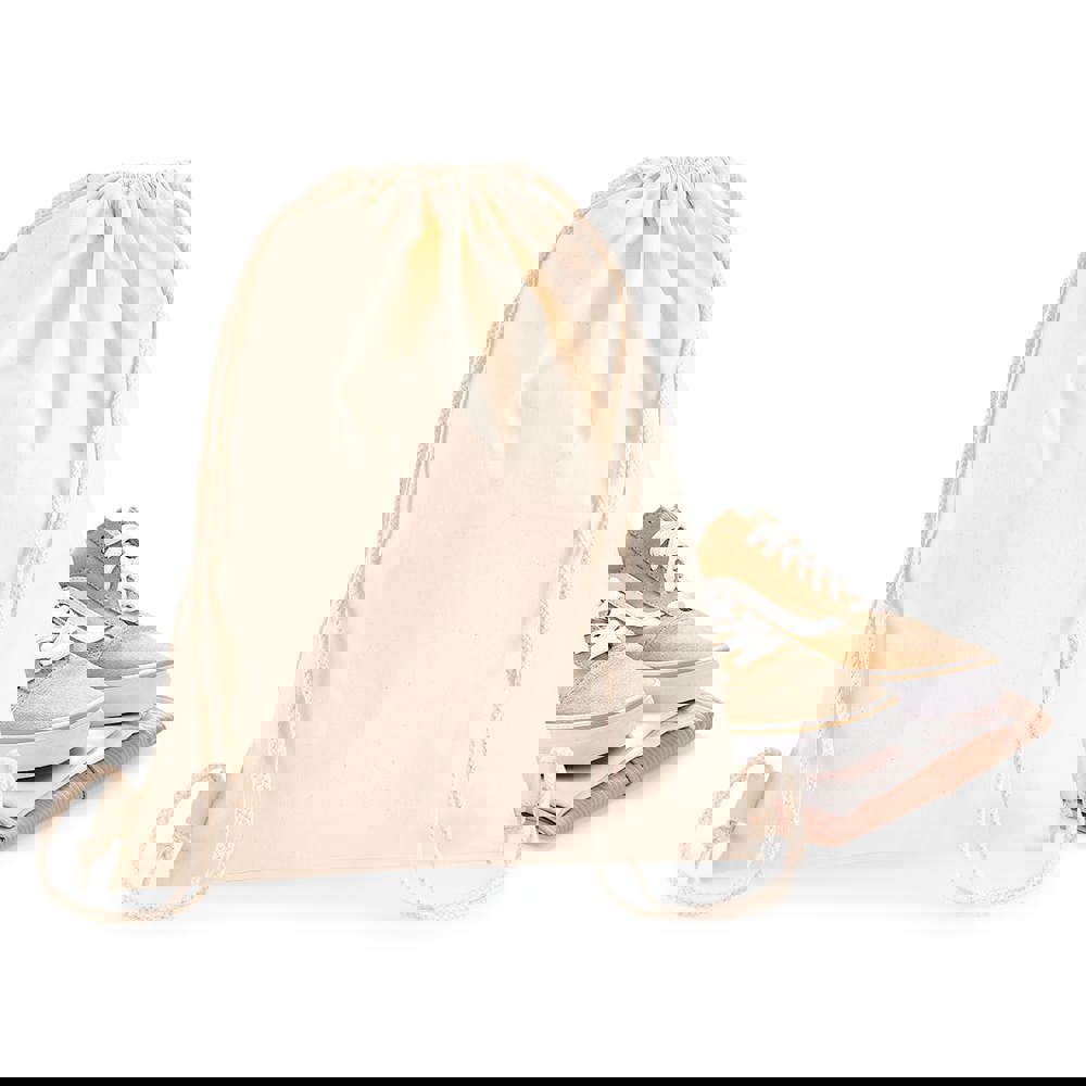 100% cotone. Superficie di stampa di qualità, per una personalizzazione perfetta. Chiusura con cordoncino.