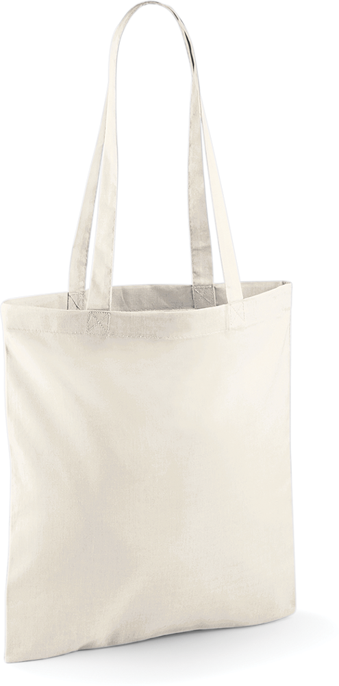 100% Cotone. Manici di media lunghezza (67 cm). Può essere portata a mano o a spalla. Adatta per la stampa e il ricamo.