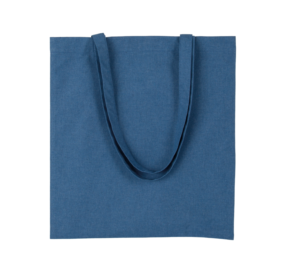 Cotone riciclato / poliestere riciclato. Shopper piatta con manici di 70 cm nello stesso tessuto della borsa. Questa borsa fa parte del progetto "K-loop". Grazie a questo progetto, Kimood chiude il cerchio dell'economia circolare nel senso letterale del termine. Il cotone utilizzato proviene, infatti, dagli scarti di lavorazione degli articoli in cotone del marchio Kariban e della linea KARIBAN BRANDS. Il poliestere aggiunto proviene dal riciclo di bottiglie di plastica PET. Durante il processo di riciclo, al filato vengono applicati dei traccianti, ovvero filamenti in viscosa e ceramica che fungono da impronte digitali uniche. I traccianti riflettono la luce in modo unico e contengono, quindi, un codice univoco e inviolabile. Questo ci consente di memorizzare in una blockchain tutte le informazioni relative ai processi a cui il filato è stato sottoposto in modo univoco. Grazie alla tecnologia dei traccianti Aware™ e alla relativa piattaforma blockchain, Kimood consente al consumatore finale di seguire l'intero processo produttivo. Ciò garantisce che il prodotto sia stato riciclato utilizzando i suoi stessi rifiuti, senza alcuna possibile alterazione del processo. Un'etichetta speciale, con un codice QR che consente l'accesso alla piattaforma Aware™ e l'autenticazione diretta delle certificazioni con un semplice smartphone.