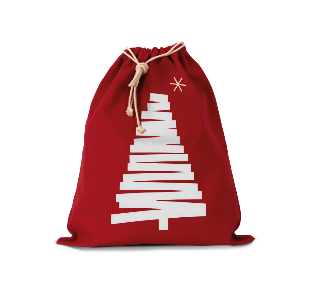 100% cotone. Borsa con chiusura a cordoncino, stampa con motivo "Abete".