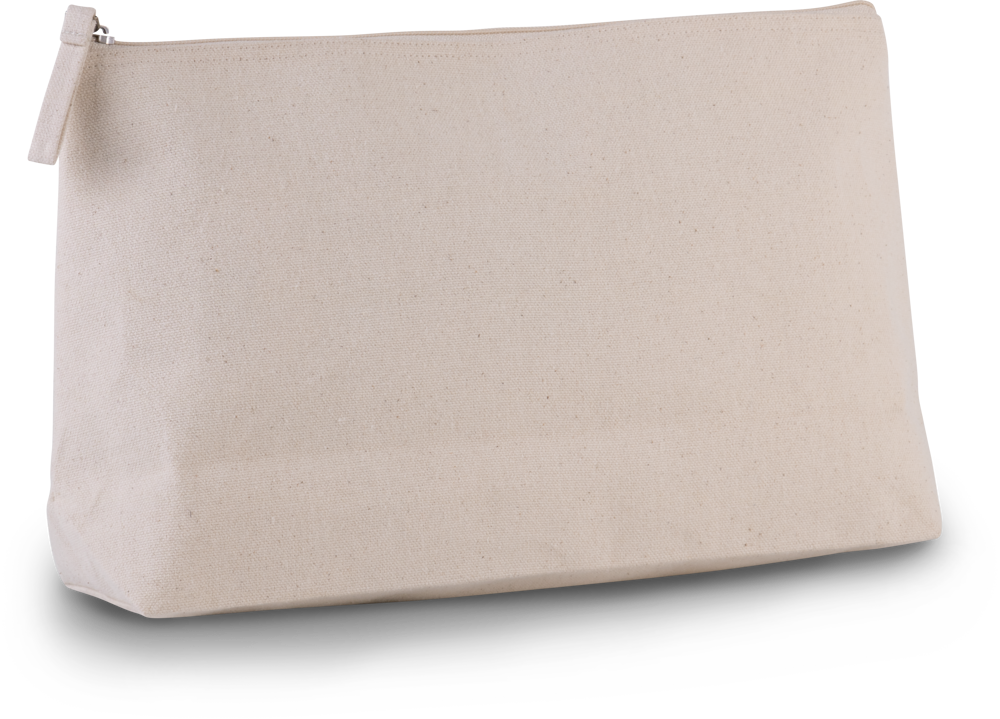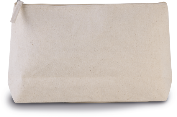 Trousse da bagno a soffietto in cotone laminato in poliuretano. Zip e tira-zip tono su tono.