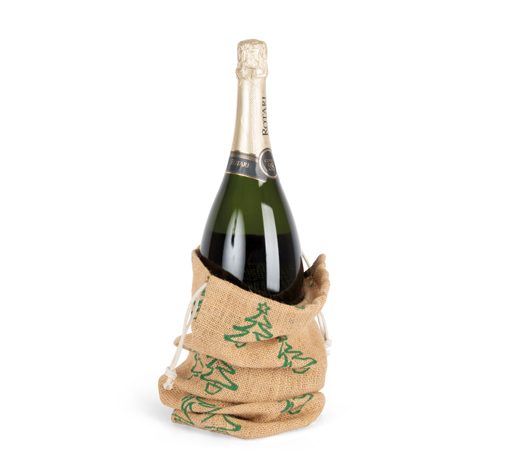 100% iuta. Chiusura con coulisse. Ideale anche per le bottiglie di champagne.