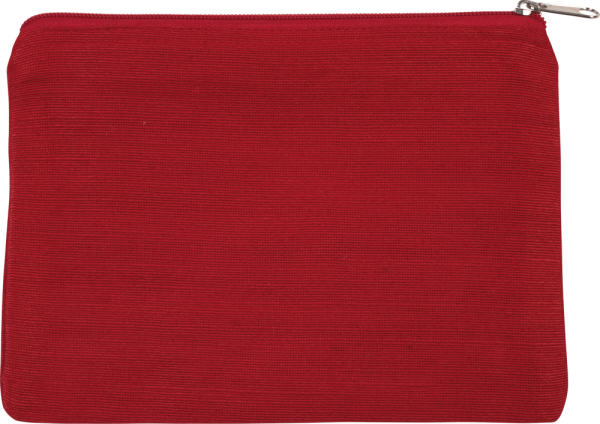 Pochette in tela di juta e cotone (juco). Chiusura con zip di colore a contrasto.