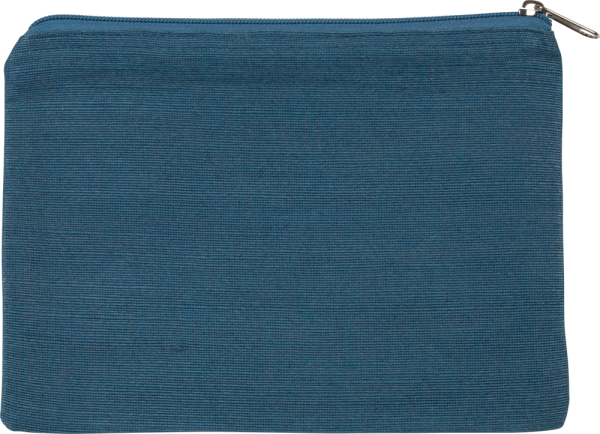 Pochette in tela di juta e cotone (juco). Chiusura con zip di colore a contrasto.