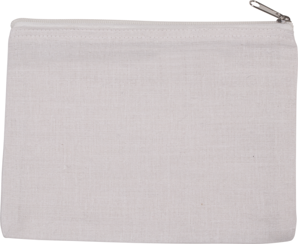 Pochette in tela di juta e cotone (juco). Chiusura con zip di colore a contrasto.