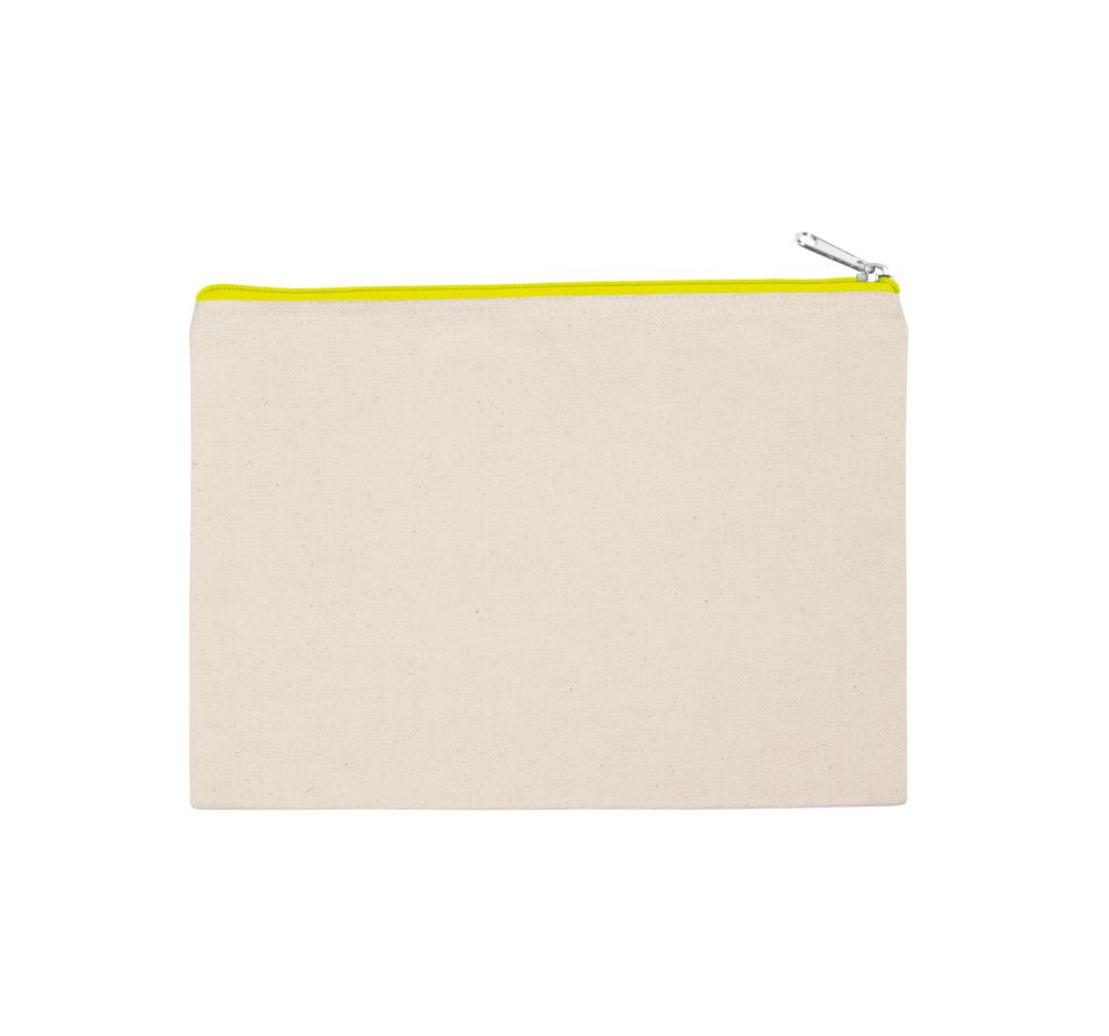 Pochette in cotone canvas, zip con colore a contrasto. Modello grande.